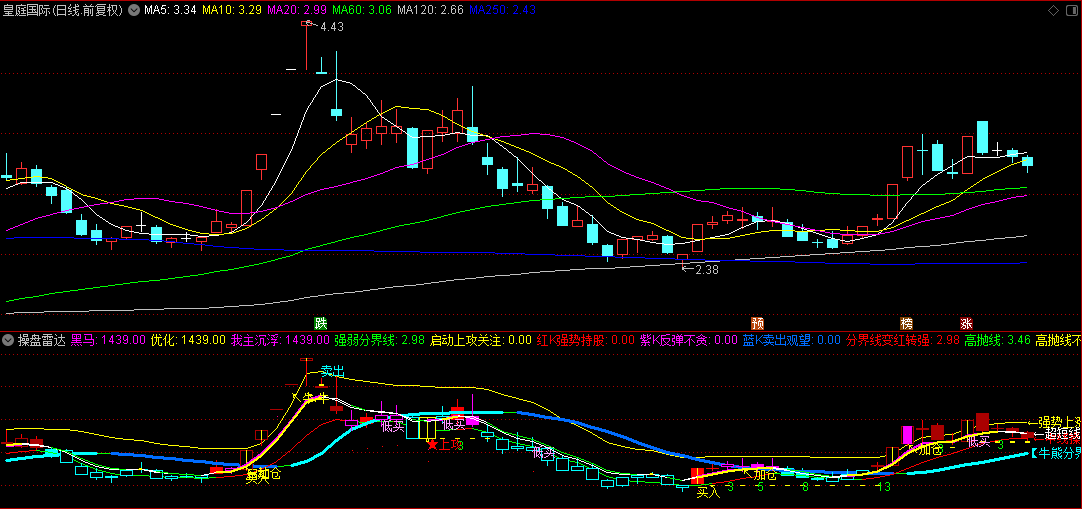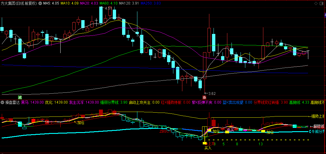 操盘雷达的核心指标基于价格与均线的动态关系,通过计算价格与不同周期均线的偏离程度,判断市场的强弱趋势。