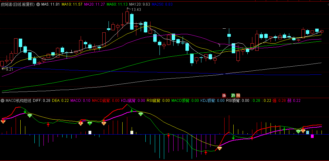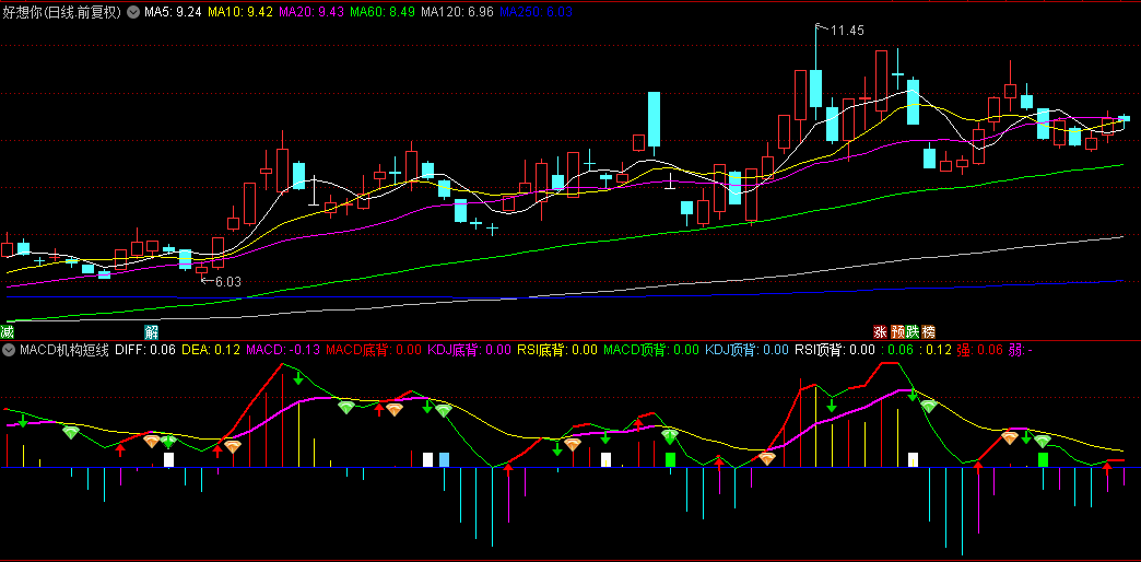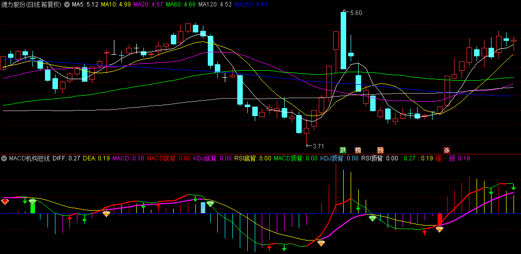 当DIFF与DEA形成金叉或死叉时,指标会在相应位置显示图标,帮助投资者快速识别买卖点。