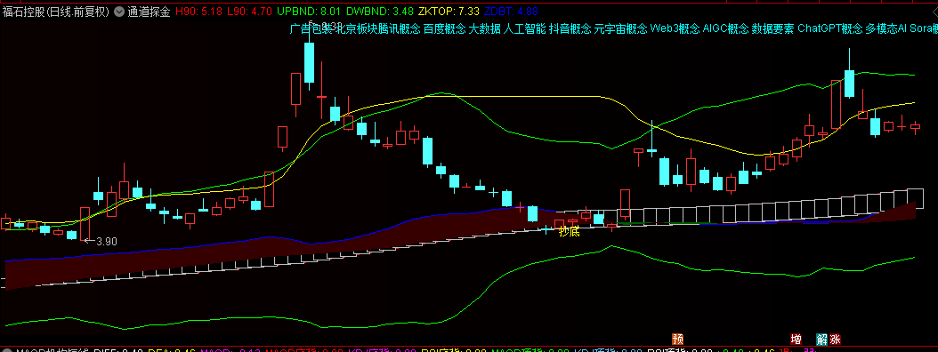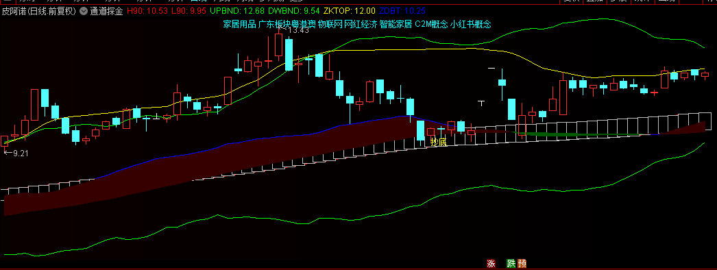 下跌通道和上升通道都可以使用:股票下跌通道时,上涨至黄线附近即可抛出,降低成本,而上升通道股票,需在通道线上方移动减仓。