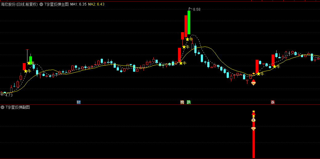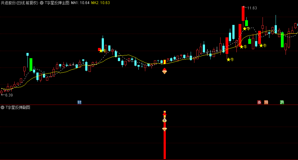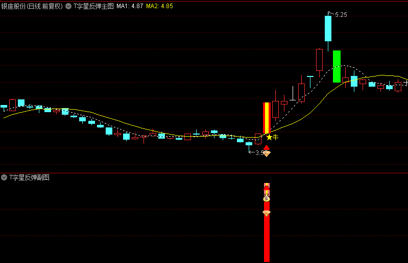 T字星反弹是一套基于股票技术分析的主图、副图和选股指标,旨在识别市场中的倒T字线和正T字线形态,帮助投资者捕捉潜在的反弹机会。该套装指标不含未来函数!