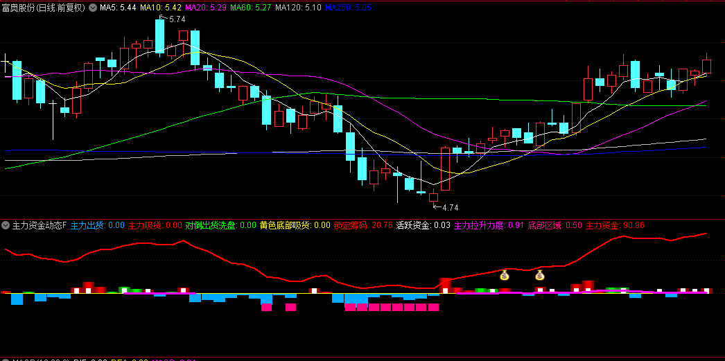 动力线与底部区域:通过动力线和底部区域的对比,源码识别了股价的底部区域,帮助投资者在低位布局。
