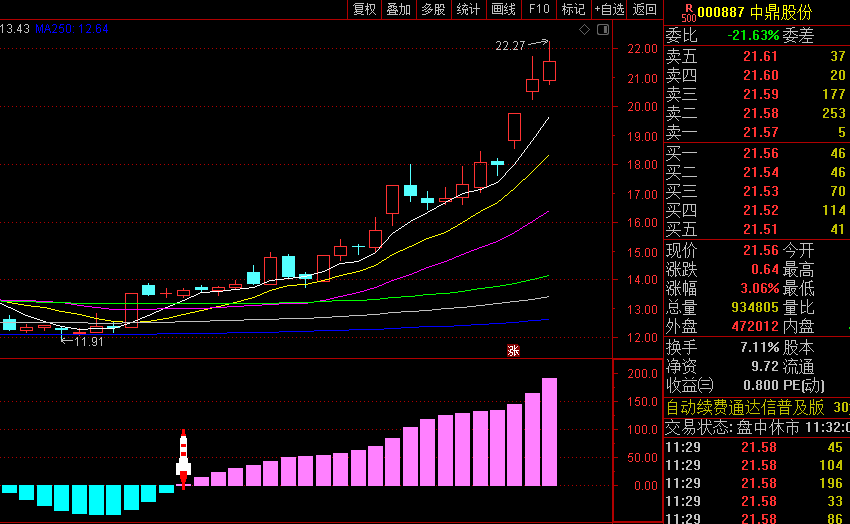 当股价从下方突破均线并站稳时,表明短期趋势可能由弱转强,这是典型的均线支撑理论的应用。