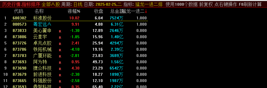 2025年第十二贴之通达信【猛龙一进二排序】副图指标,量能与价格同时突破,出票极少!
