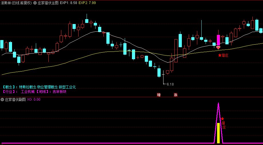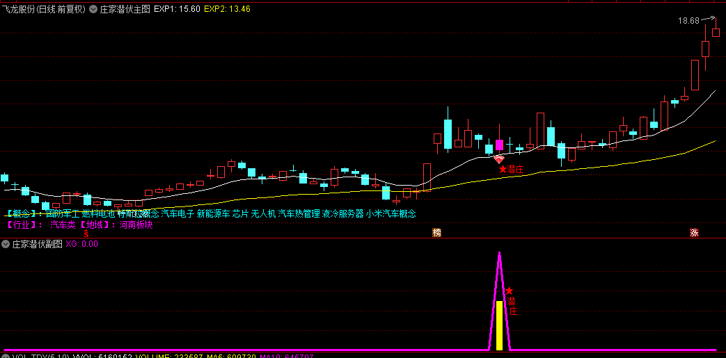 副图中的“潜庄”信号与主图相互印证,帮助投资者更精准地把握入场时机。