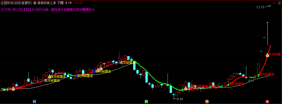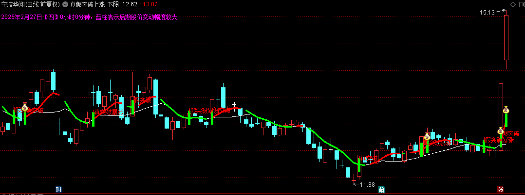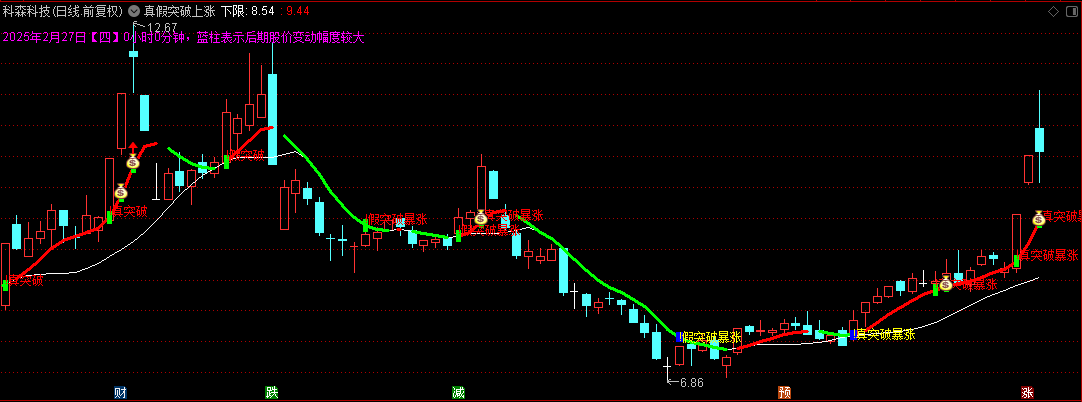 当股价突破伴随成交量显著放大且主力资金强度增强时,指标会提示“真突破暴涨”,表明上涨趋势可能持续;