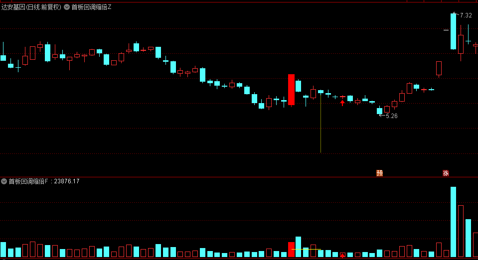 【首板回调缩倍量】主图/副图/选股指标,缩倍量之后首次收阳线,首板后的低吸点!