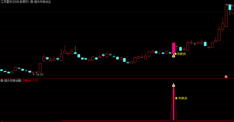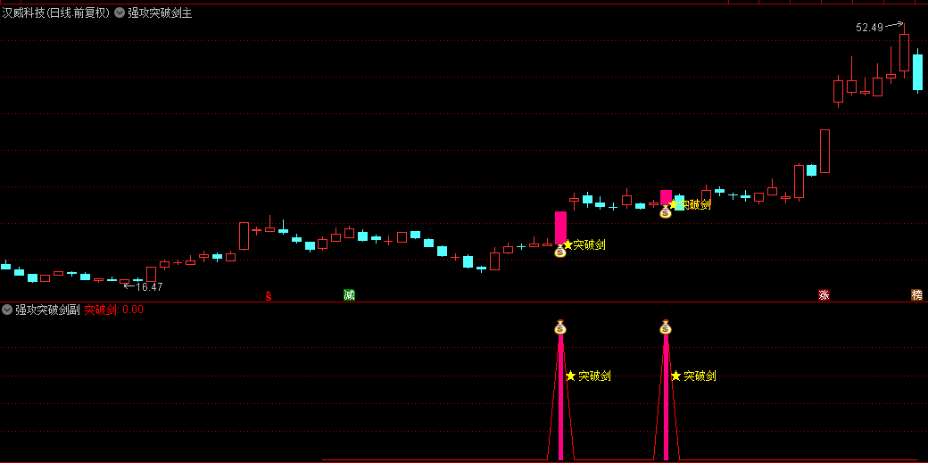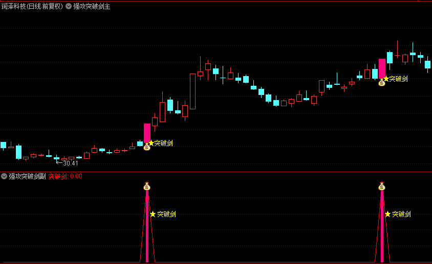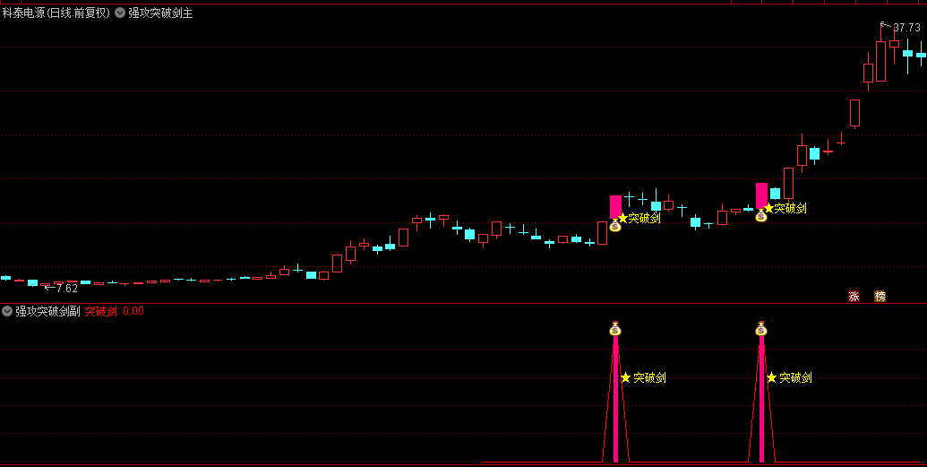 当“突破剑”出现时,表示系统认为这是一个值得关注的区域,可能是买入的好时机。