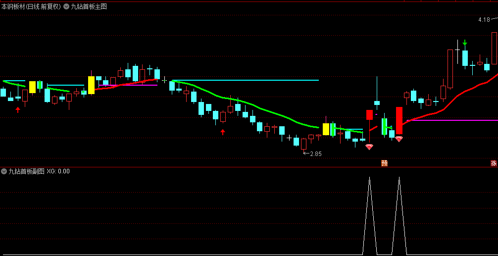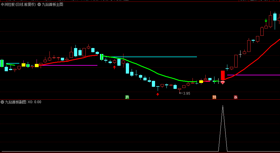 通达信【九钻首板】主图/副图/选股指标源码,经典首板战法,识别首板期反转上涨信号!