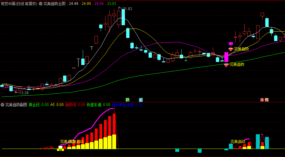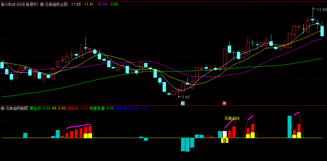 副图完美启动通过量柱放大和趋势线的结合,进一步确认主力的介入时机。具体指标包括: