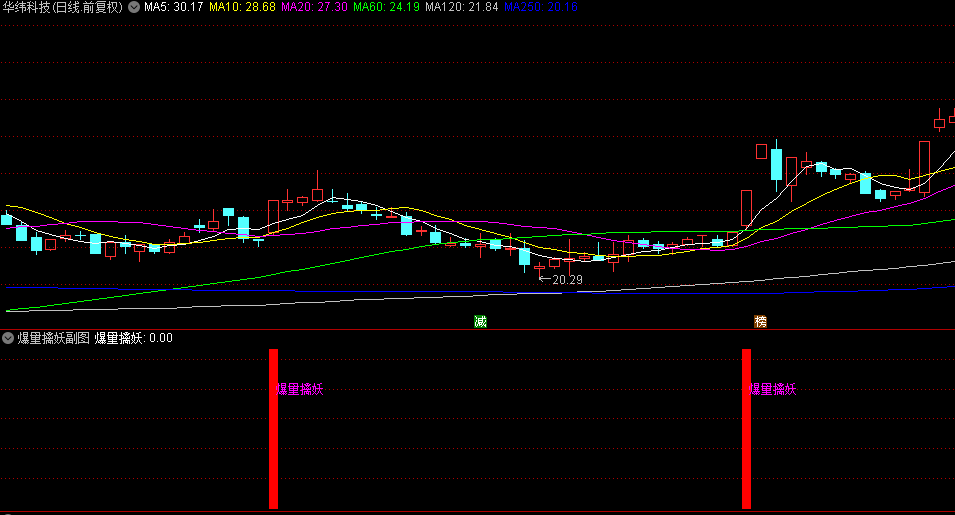2. 均线多头排列:5日均线上穿29日均线。