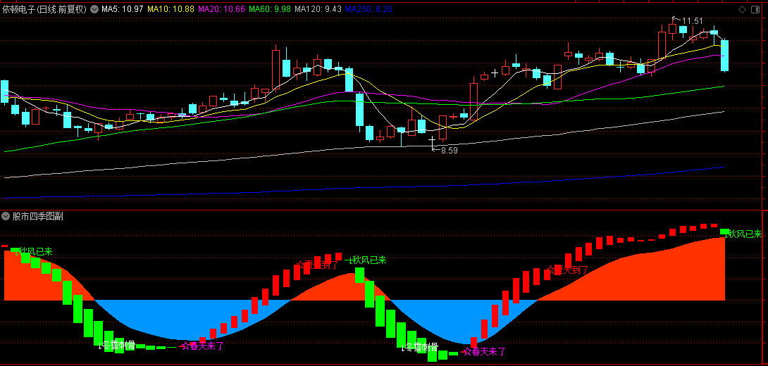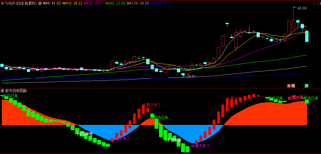 该指标创新性地将四季变换融入股市分析,以直观的图形和清晰的信号,助您精准把握市场脉搏: