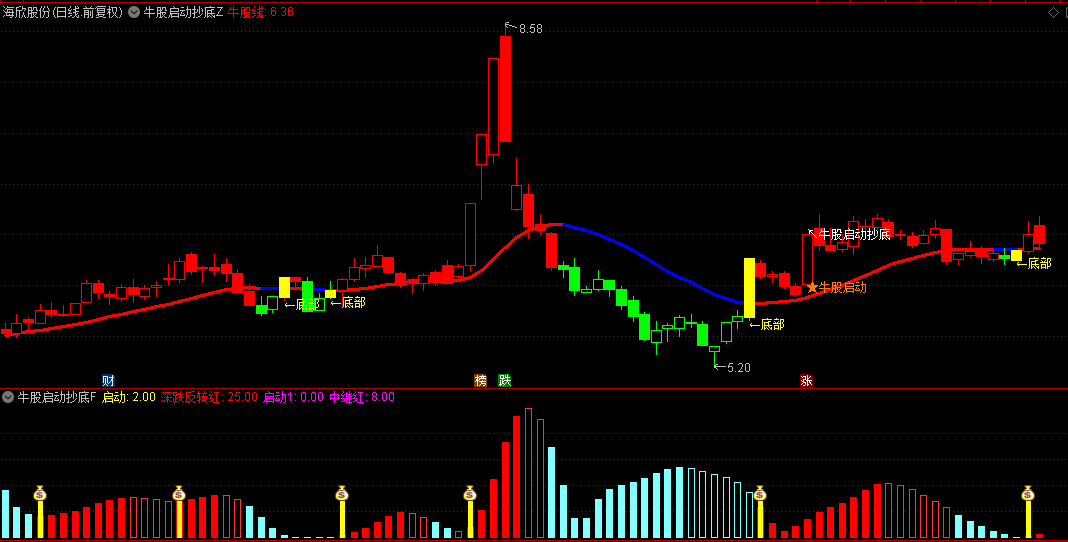 5.牛股启动抄底信号是趋势信号,说明从此开始进入了牛股的上升趋势。