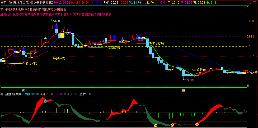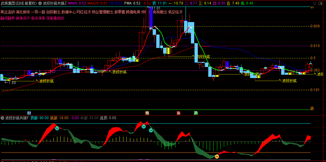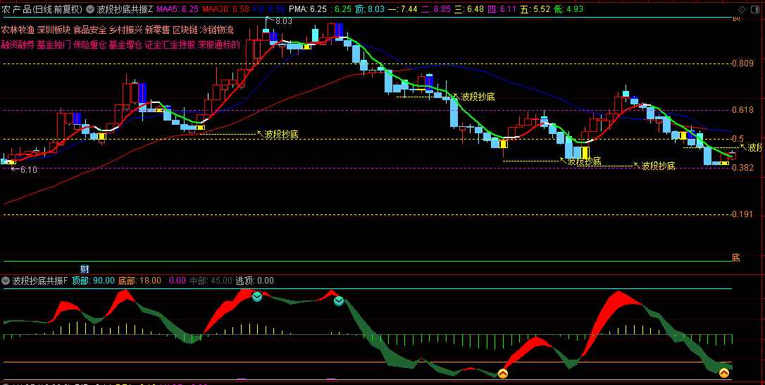 【波段抄底共振买点】主图+副图+选股指标,专为波段抄底操作思路设计,把握共振转折买点!