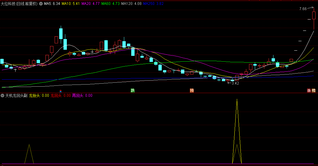 3、龙回头:底部第二次信号,信号偏少。是底部比较安全的介入点。
