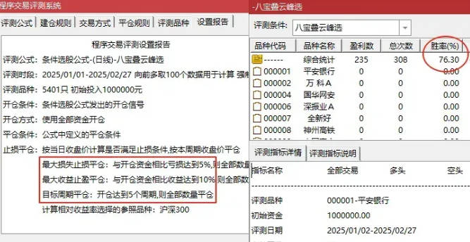 如果我们按照正常的交易来评测,开仓后持有5天,亏5个点止损,赚10个点止盈,胜率为76%:
