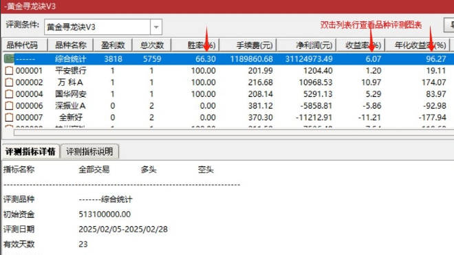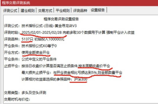 以今年2月份行情为基础,设置测试条件为:100000本金,每次出信号满仓 ALL IN,亏5%自动清仓。
