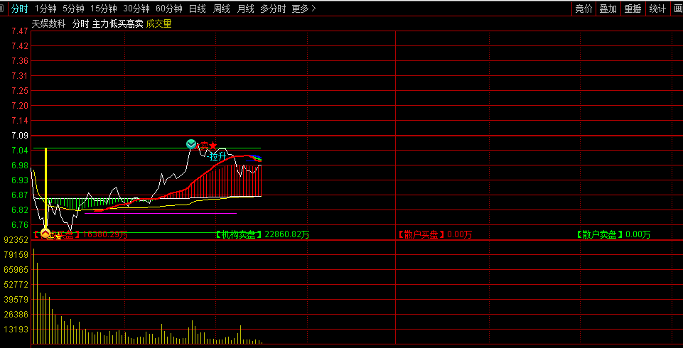 通达信【主力低买高卖】分时主图指标,主力大户与散户动向,机构与散户多空买卖盘力量!