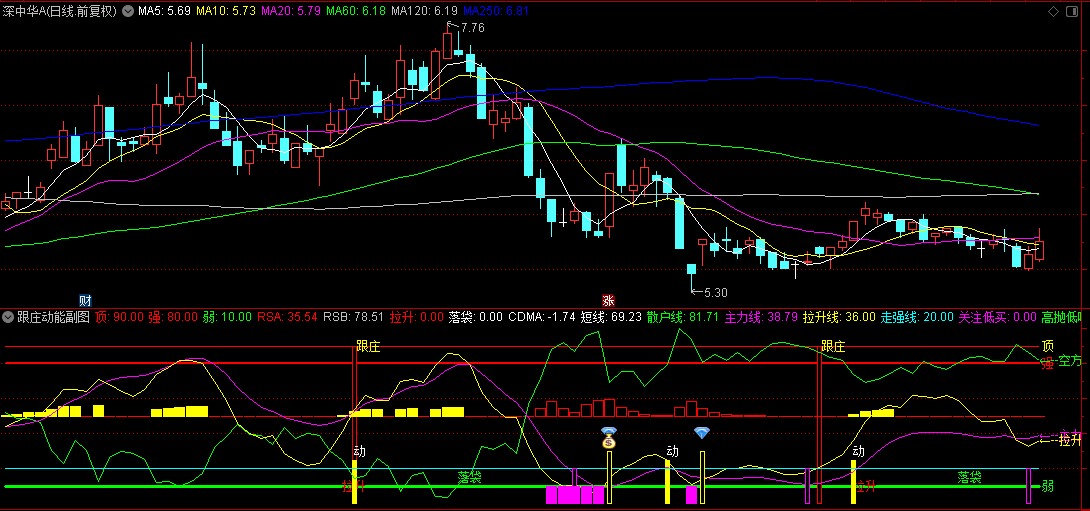“跟庄动能”副图指标,包含选股指标,指标没有未来函数。