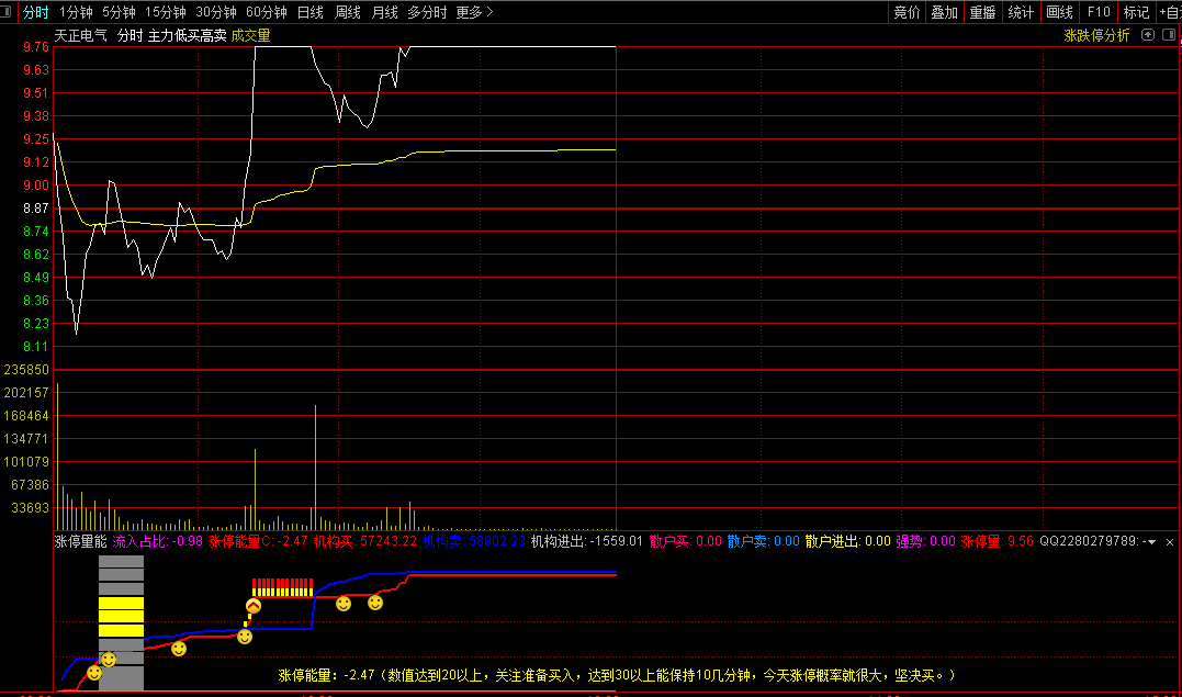 通达信【涨停量能】分时副图指标,天天抓涨停,谁用谁知道!