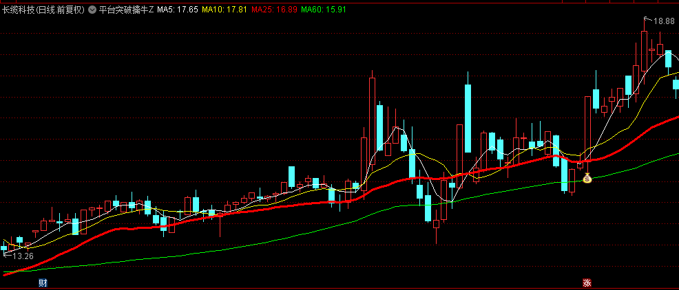 今日5日均线高于25日均线,表明短期趋势开始转强。