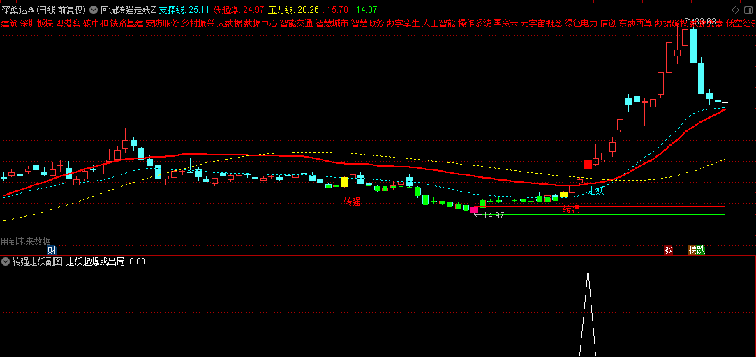 选股指标结合了回调买点和走妖信号,筛选出那些在回调后转强并且可能进入妖股模式的股票。