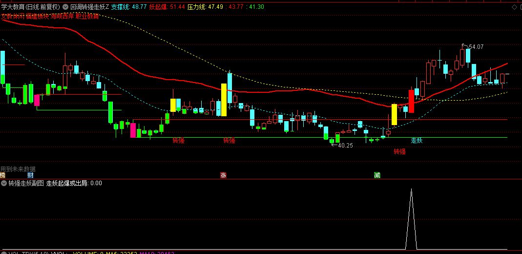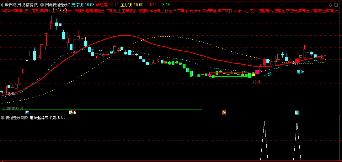 通达信【回调转强走妖】主图/副图/选股指标,回调后的转强信号,走妖时建仓出击!