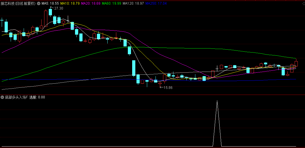 精选【底部多头入场拐点】副图+选股指标,底部识别多头反转入场,持有五天胜率72%