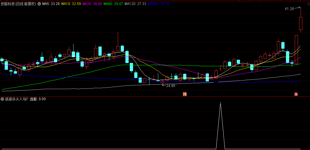 指标要求股价在底部区域出现放量上涨,这是技术分析中经典的量价配合信号。