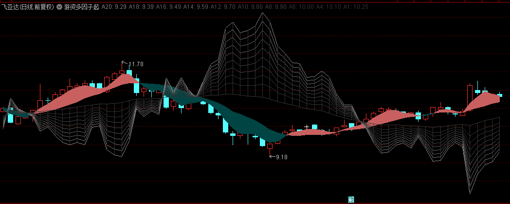 指标中使用了多条均线,通过均线的排列关系判断趋势的强弱。