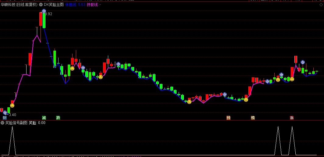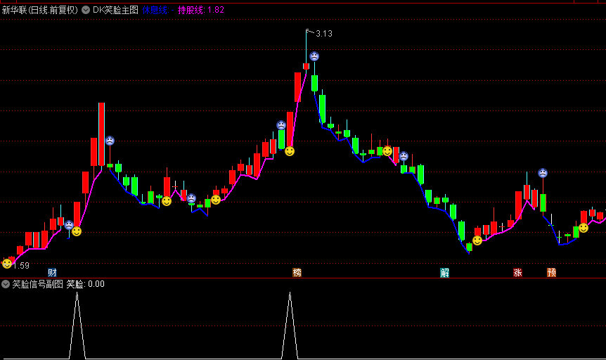 -“笑脸”:代表买入信号,显示为红色K线及持股线,提示投资者可考虑进场。