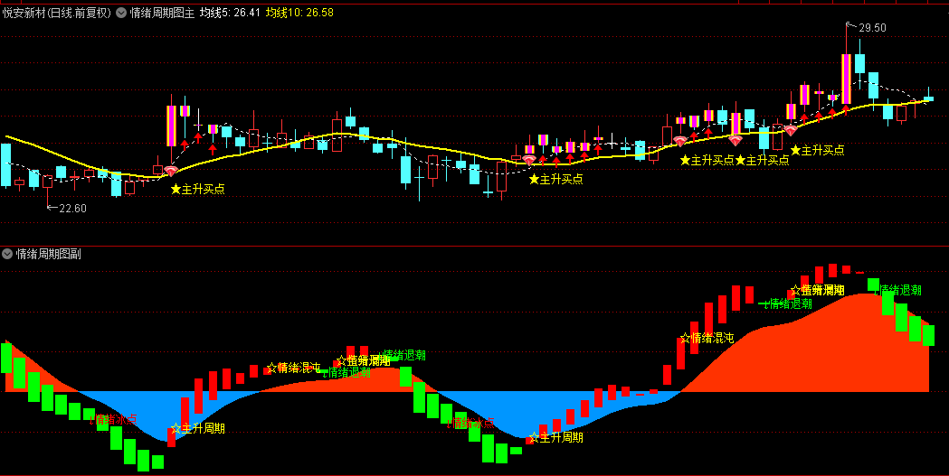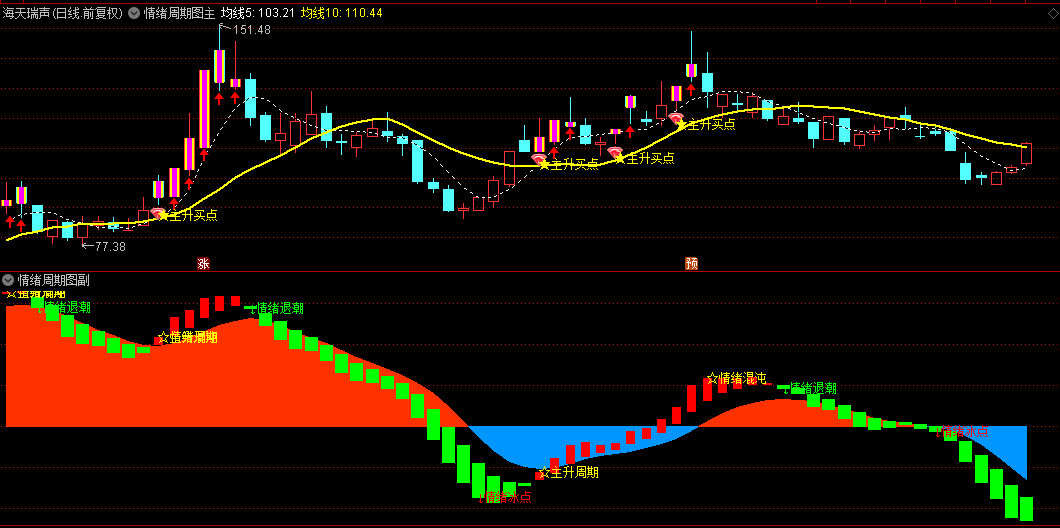 顶级游资的【龙头情绪周期图】主图副图选股指标,主图确定买点,副图确定情绪周期!