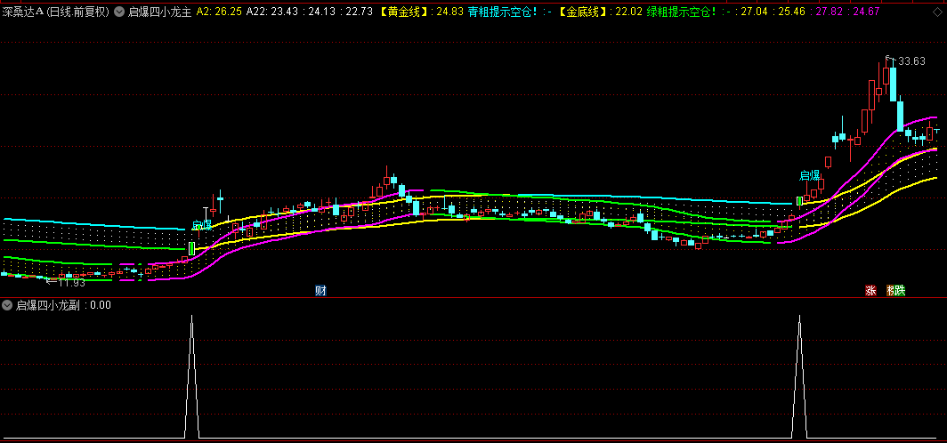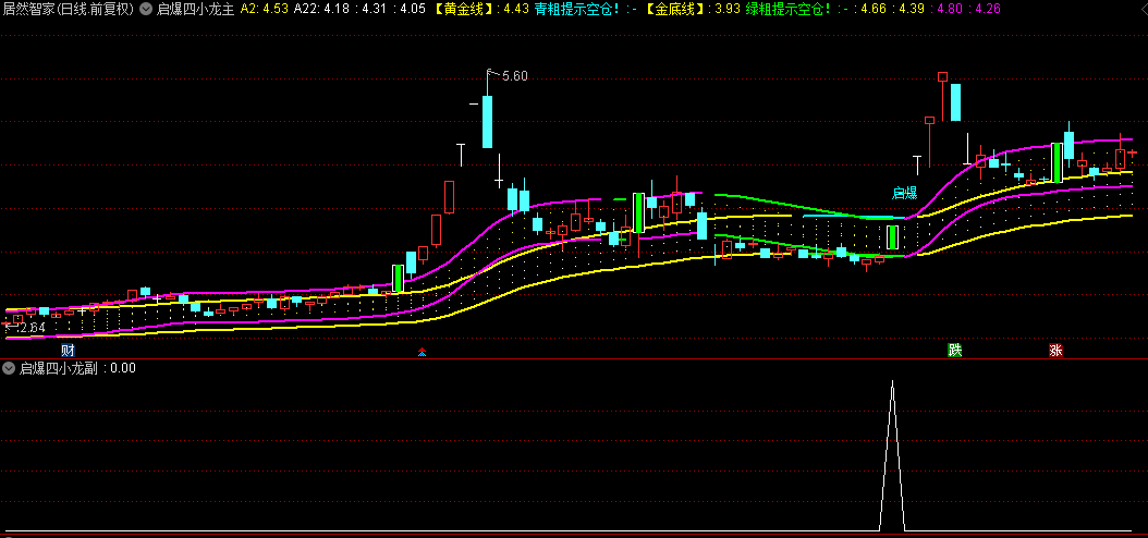 本套【启爆四小龙】指标包含一个主图和一个副图一选股;