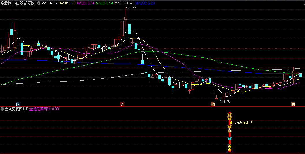 4.综合信号:当短期动能上穿中长期动能与超卖区域且动能回升同时成立时,指标发出“金龙见底回升”信号,提示股价可能见底并即将反弹。