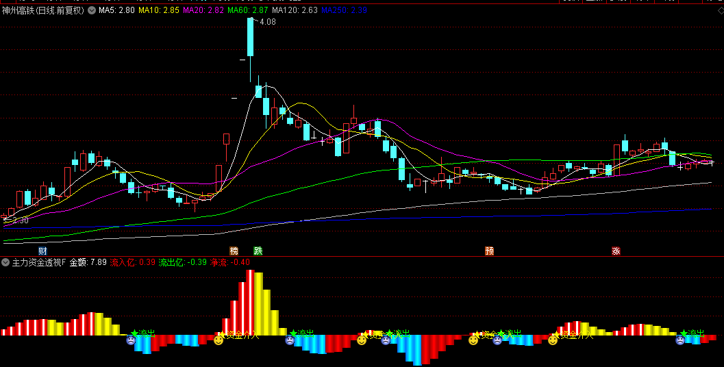 -当净流由正转负时触发"★流出"(哭脸)信号;