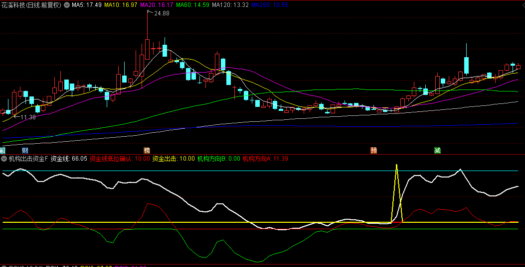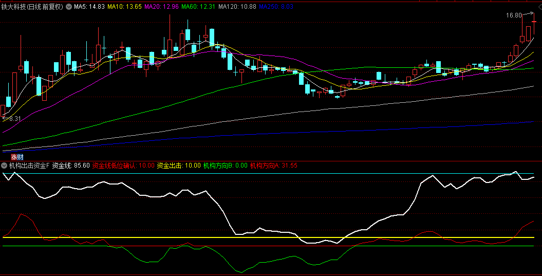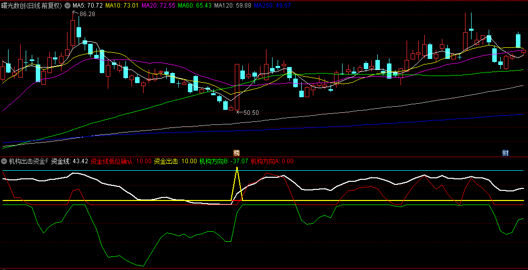 当机构方向A显示为正值并用红色标识时,表明机构资金方向可能向上,股价处于相对强势状态。这增强了当前上涨趋势的可信度。