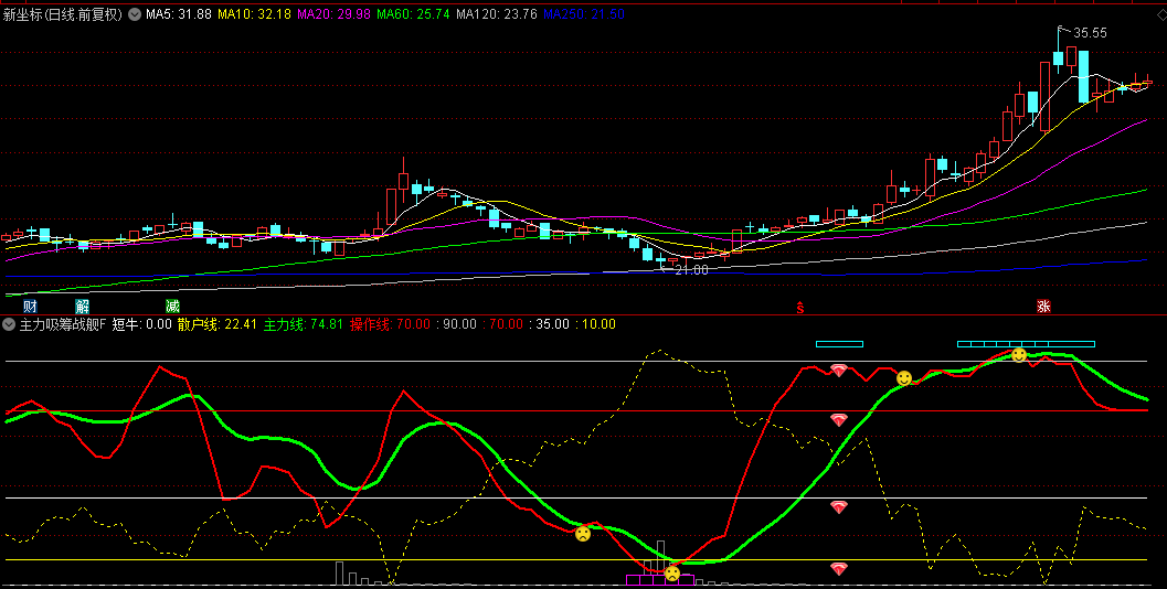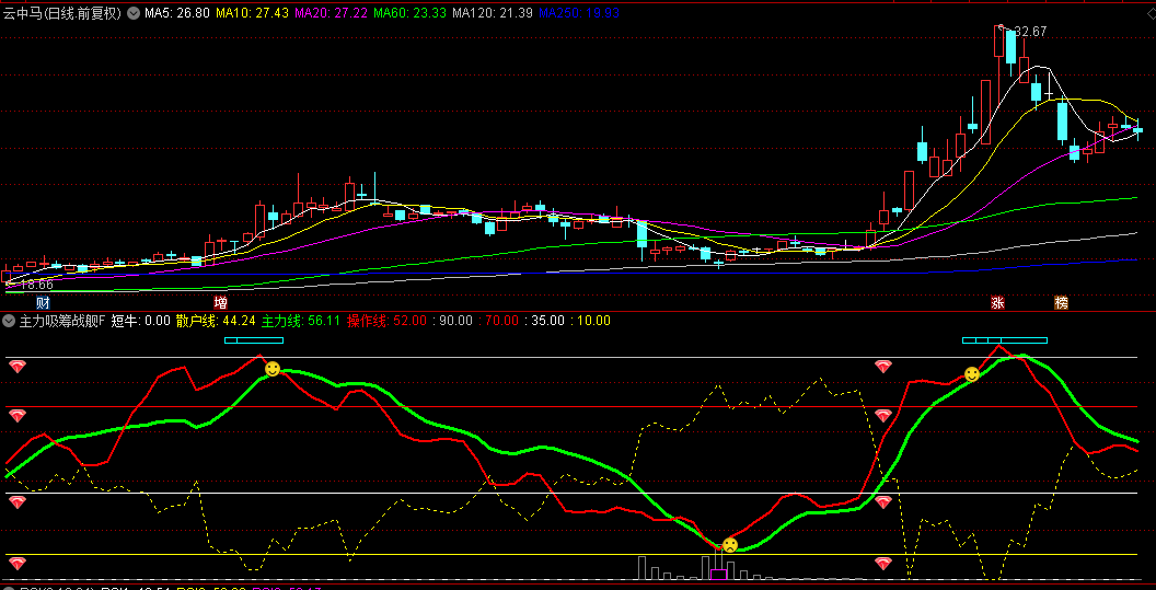 -散户线低于30时,表明散户筹码分散,主力具备拉升条件。此时,市场抛压较小,主力更容易推动股价上涨。