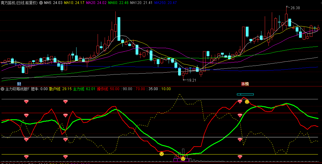 -若主力线持续位于20以上且伴随“红钻石”信号,预示强势多头行情,是加仓或持有的良机。