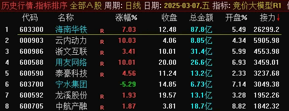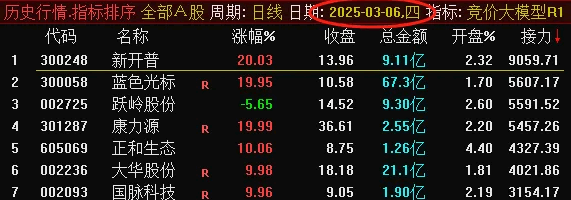通过“接力”字段降序排列,投资者可以快速识别出符合量能接力条件的个股,从而在开盘后迅速布局。