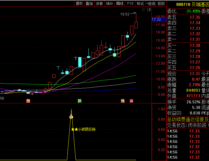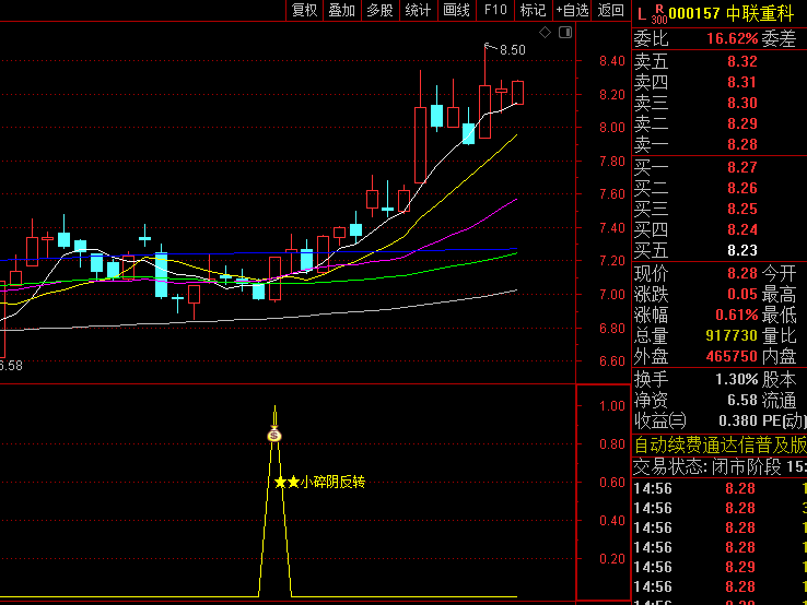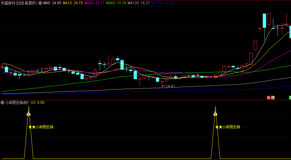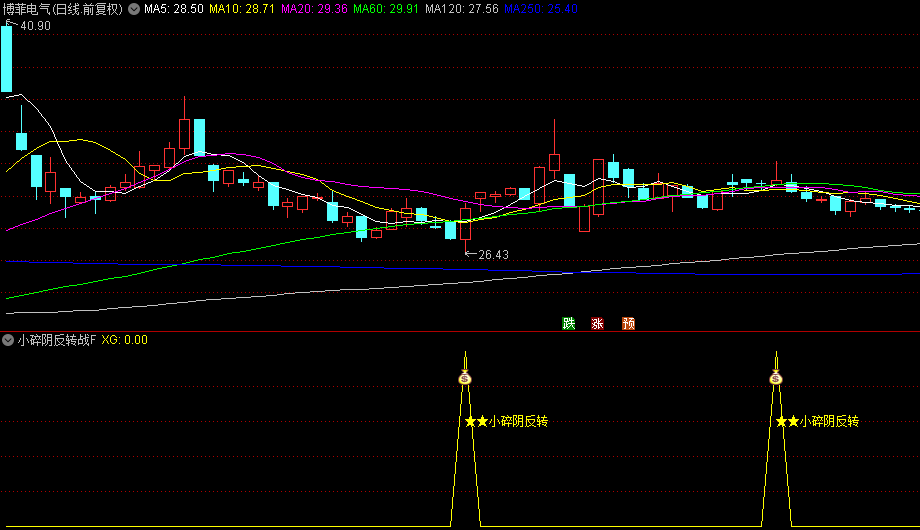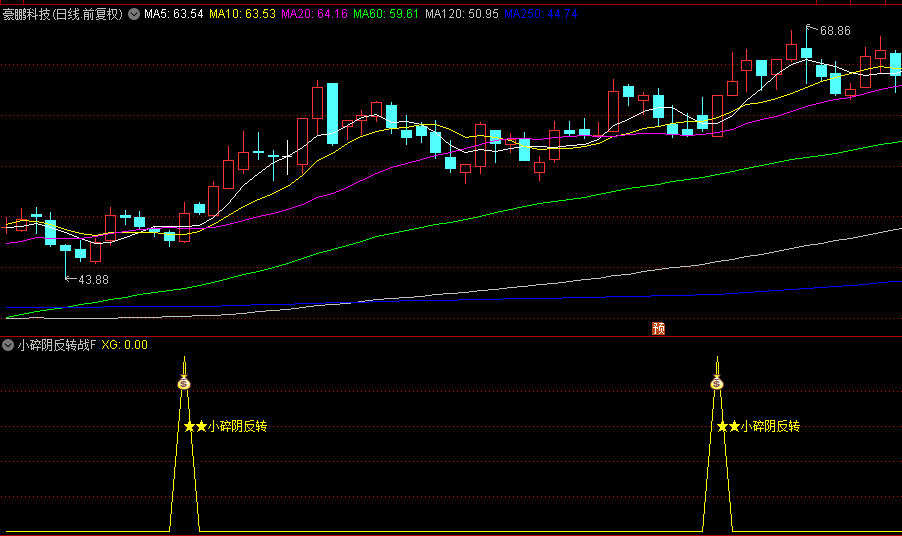 并显示“★★小碎阴反转”文字提示,帮助投资者快速识别机会。