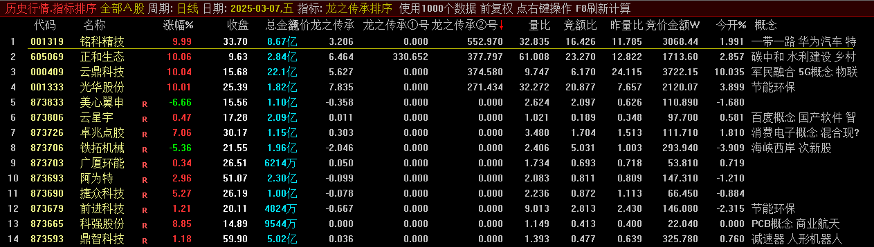 【龙之传承排序】副图指标,竞价策略工具分享,全市场周期通用型竞价指标!