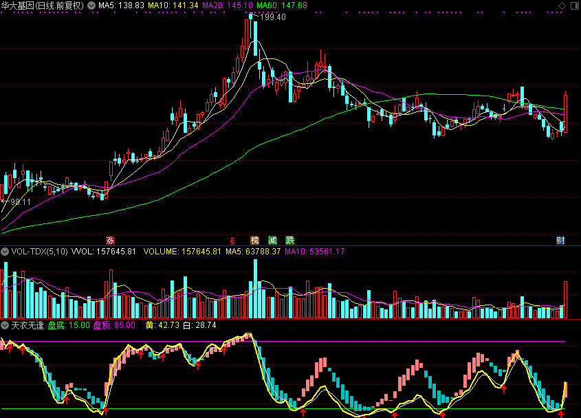 黄:EMA((CLOSE-VAR6)/(VAR7-VAR6)*4,4)*25,COLORYELLOW, LINETHICK2;