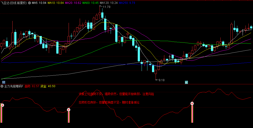 当主力资金开始向上运行时,指标会发出“+”号预警信号,提示投资者主力正在介入或加仓。