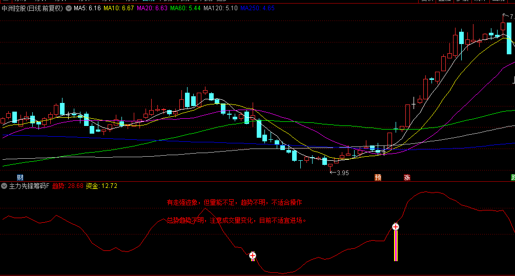 【主力先锋筹码】指标的核心功能在于识别主力资金的运行方向。