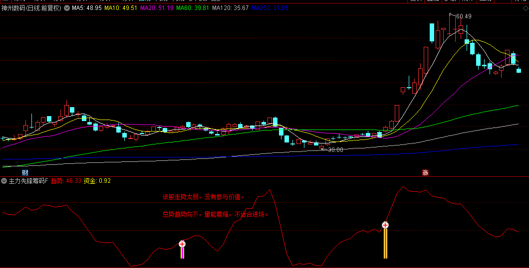 除了主力资金的预警信号,该指标还提供了个股趋势形态的参考。