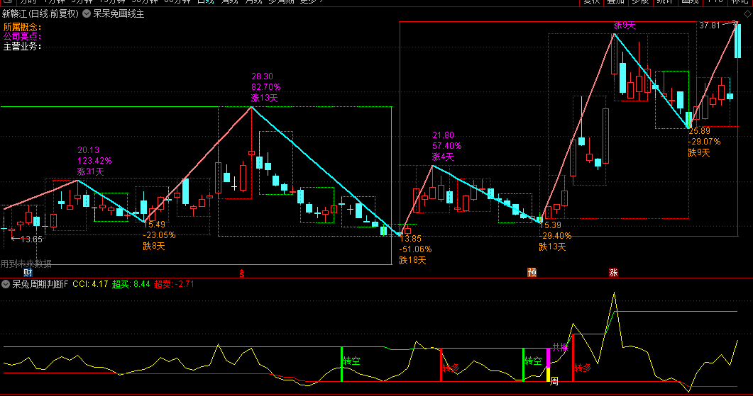通达信【缠论之盗梦空间】主图副图指标,呆呆兔精品,季K月K周K都显示在主图了!