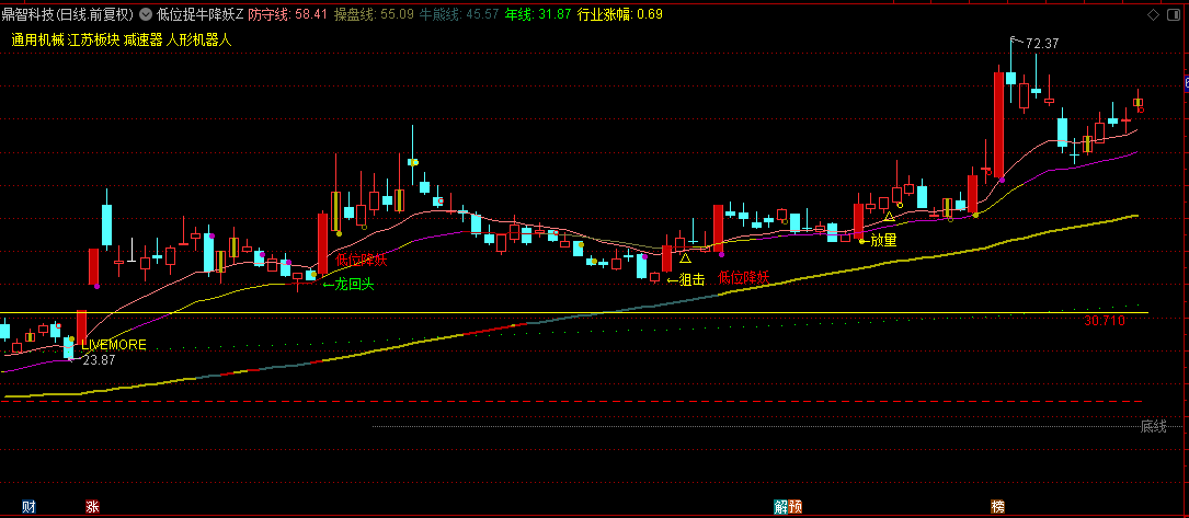 通达信【低位捉牛降妖】主图+选股指标,资金流向理论+超买超卖理论,筛选出资金大幅流入的龙头股!