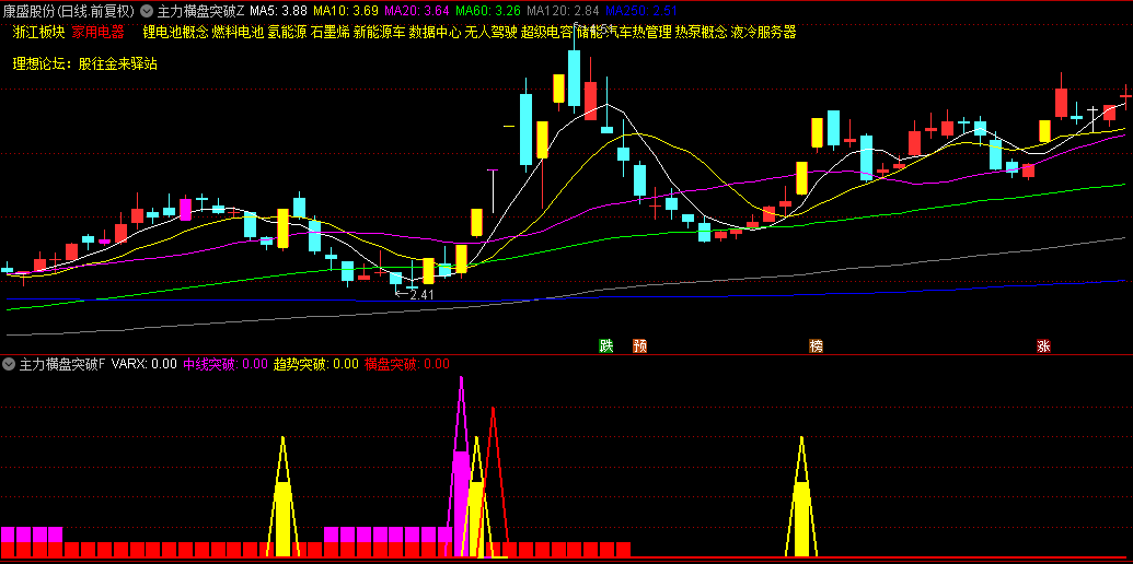 通达信【主力横盘突破】主图+副图指标,红色横盘突破信号,横盘结束进入新行情阶段!