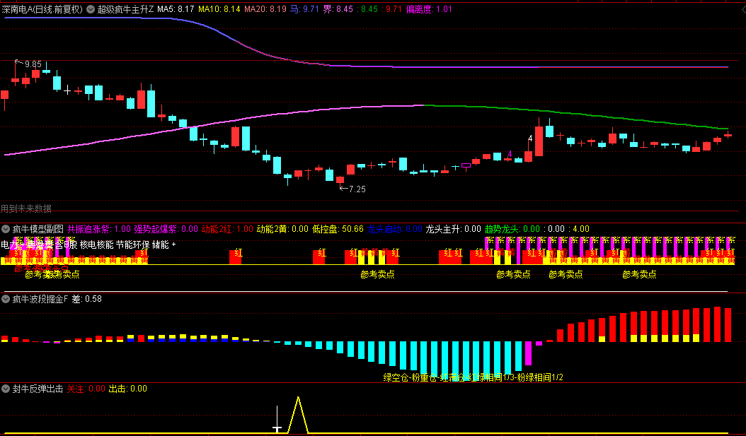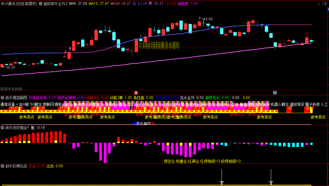 通达信【超级疯牛主升】主图+【疯牛模型】副图+【疯牛波段掘金】副图+【封牛反弹出击】副图指标
