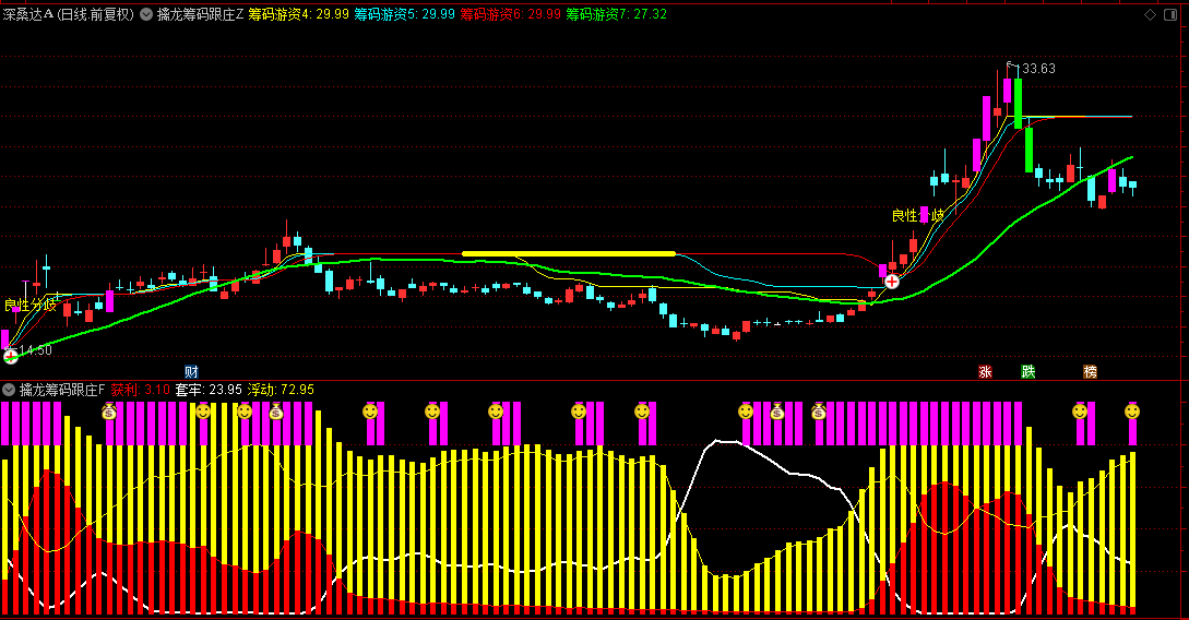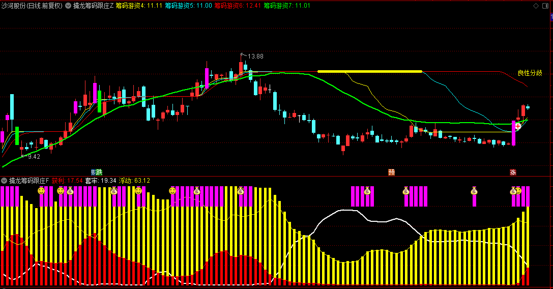 【擒龙筹码跟庄升级版】主图+副图+选股指标解析:红色柱与紫色柱共振,捕捉买入良机!