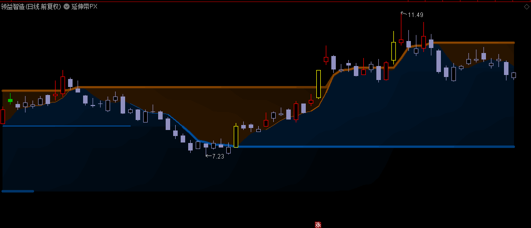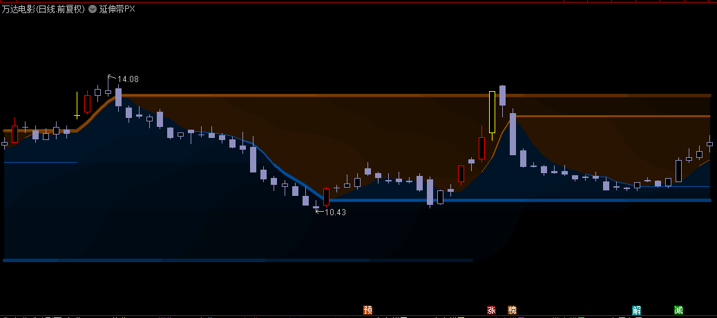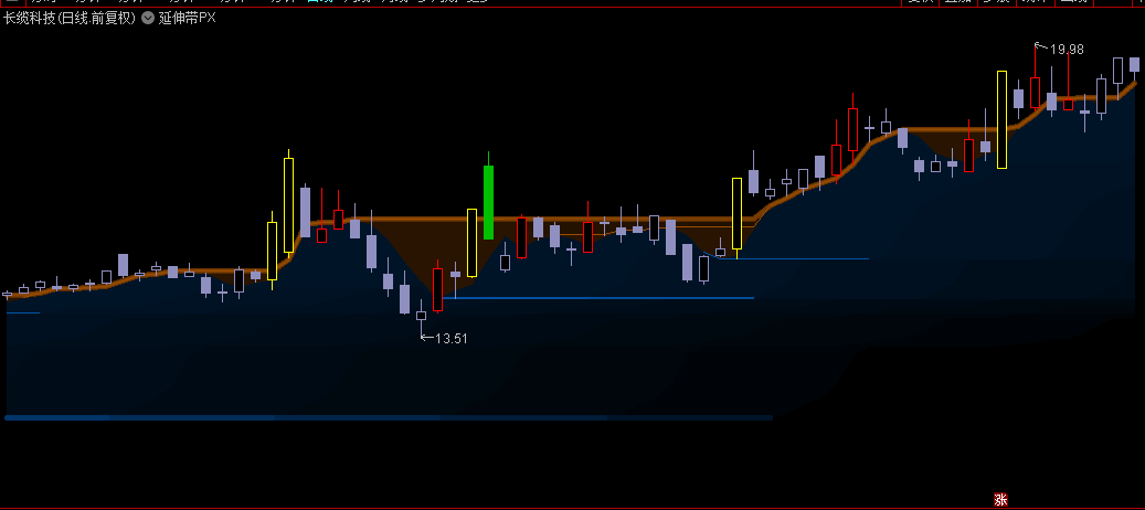 【渐变艺术】通达信【延伸带PX】主图指标,均线延伸顶底+异动k线标记,达到趋势识别的效果!